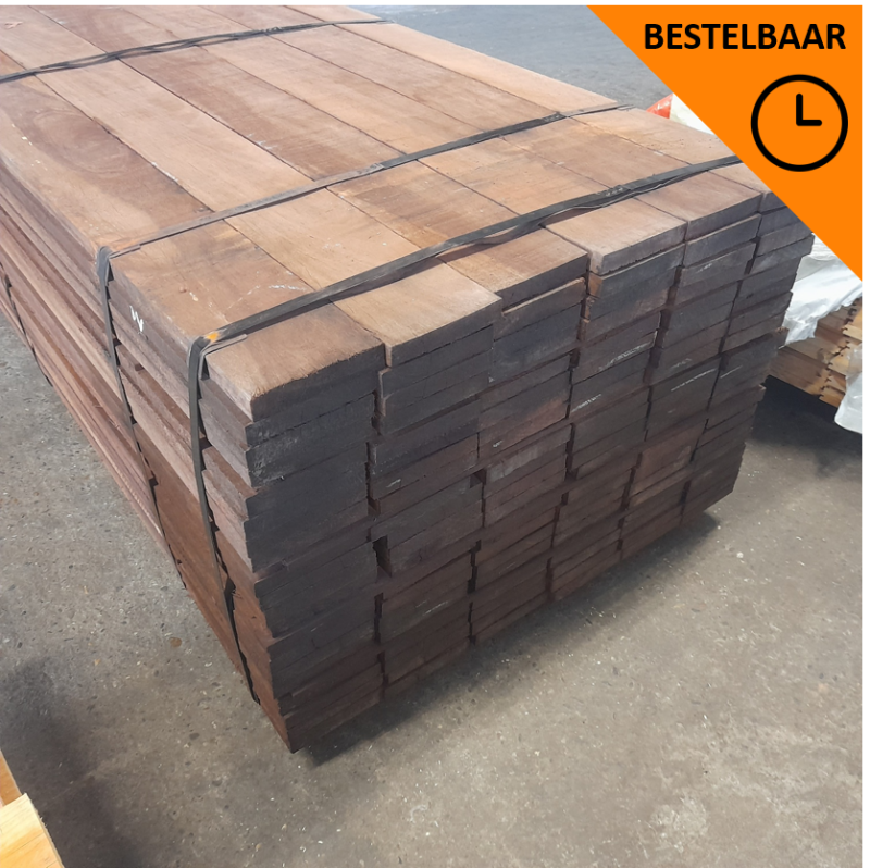 Hardhouten beschoeiingsplanken, deze planken worden veel gebruikt als beschoeiing langs de waterkant of bijvoorbeeld voor borderranden en grondkeringen in de tuin. Deze planken zijn niet geschaafd en daardoor minder/niet geschikt als vlonder- en/of meubelhout. In dat geval kun je beter kiezen voor hardhouten vlonderplanken.