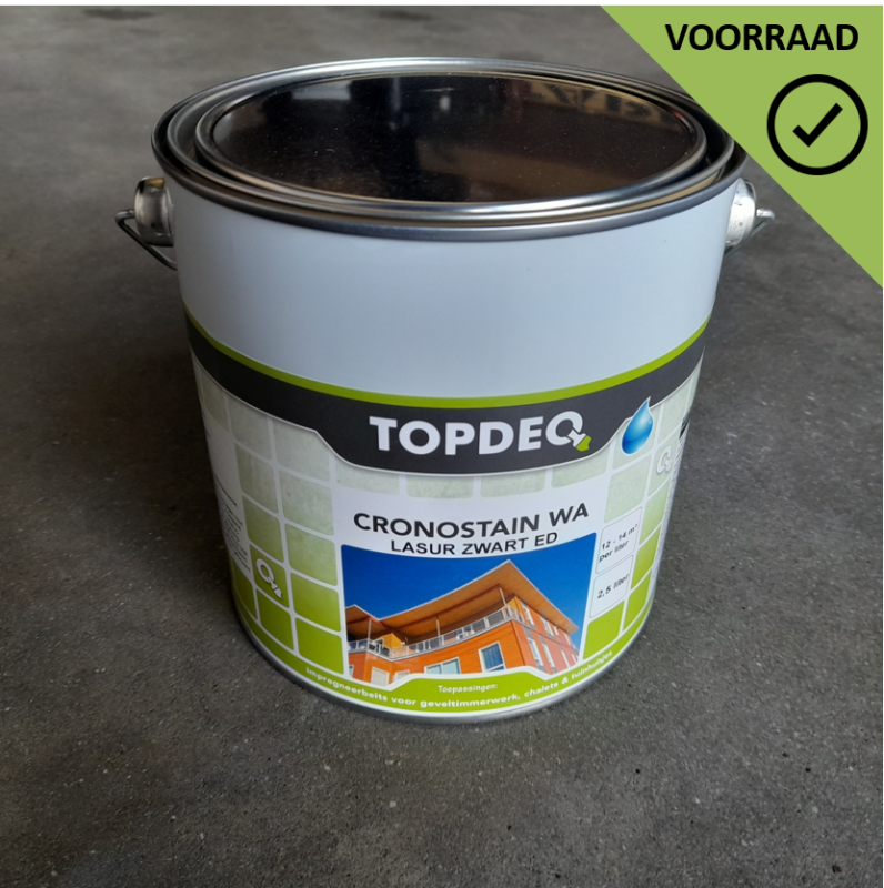 Topdeq Cronostain WA is een semi-dekkende houtbeschermende, conserverende, watergedragen impregneerlazuur met een preventieve bescherming tegen hout-aantastende organismen.