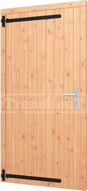 Opgeklampte deur van onbehandeld douglashout, zowel links- als rechtsdraaiend te monteren.
