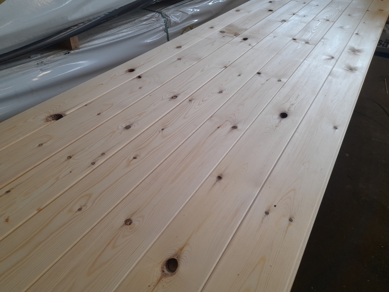 Grenen vloerdelen met vellingkant. Geschikt voor het maken van een vloer, dak, aftimmering, etc. binnenshuis.