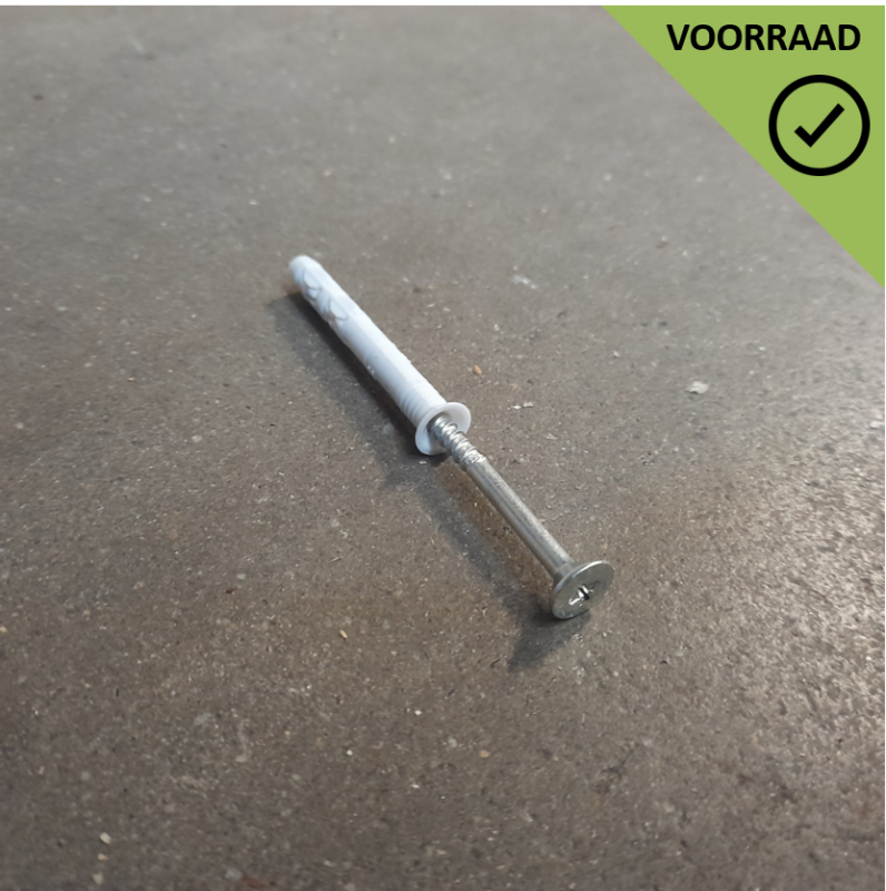 Nylon slagplug 6 x 50 mm, met verzinkte schroef.
