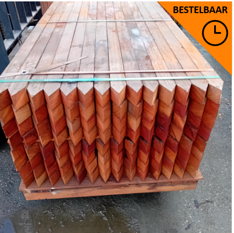 Hardhouten tuinpalen, aan één zijde gepunt.