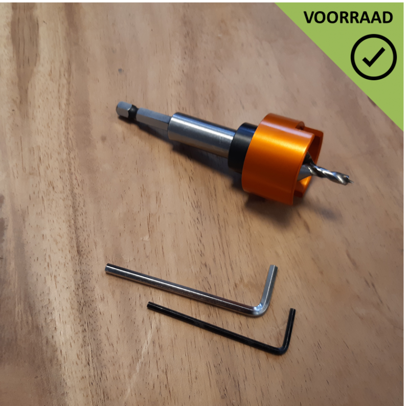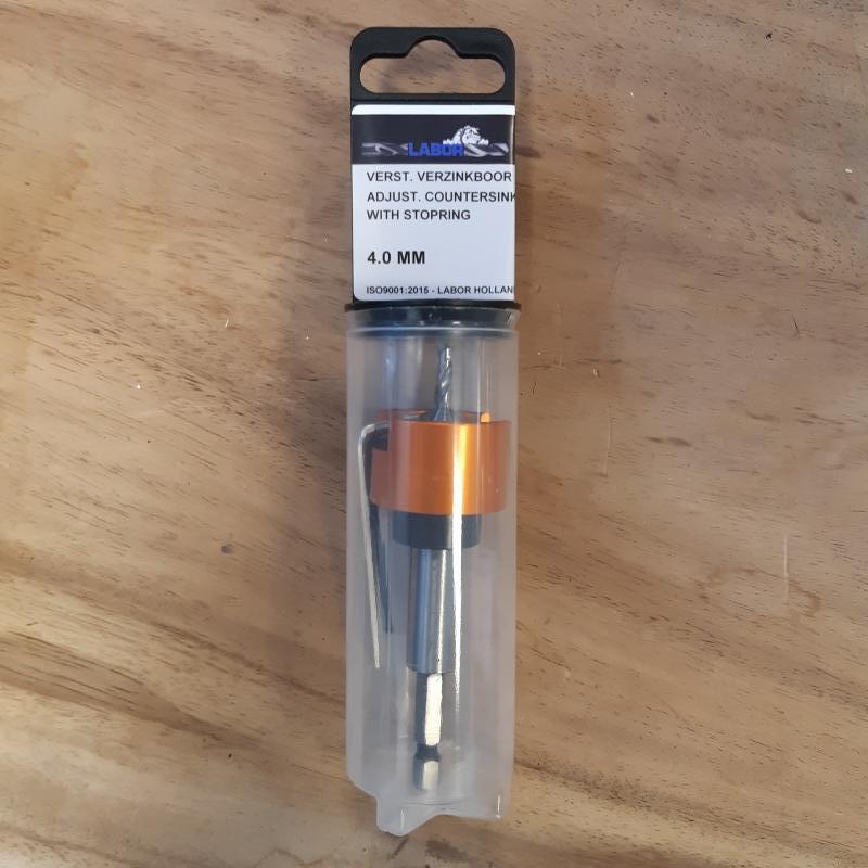 Verstelbare verzinkboor met diepteaanslag 4 mm, voor het boren en verzinken van een gat in één bewerking.